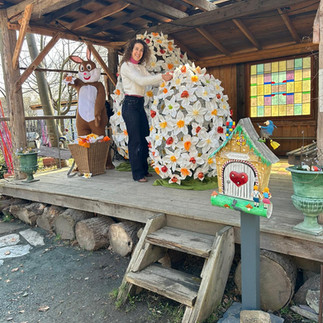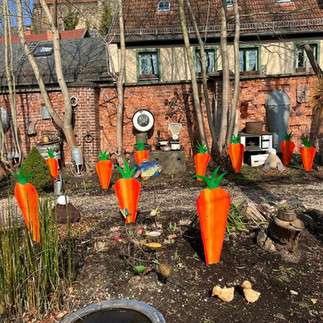 Kommt gern vorbei und genießt den schön frühlingshaften, österlich geschmückten Garten, in dem die Hasen los sind und die Möhren schon wachsen.